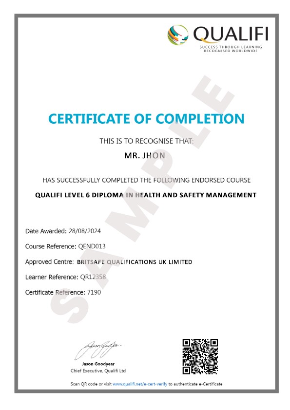 This diploma equips learners with the critical expertise needed to manage workplace health and safety challenges effectively. The program covers core areas such as risk management, organizational safety culture, ergonomics, and hazard control. Learners gain a deep understanding of regulatory compliance, emergency preparedness, and the management of hazardous substances. It also emphasizes the development of leadership skills and innovative safety solutions to enhance organizational performance.